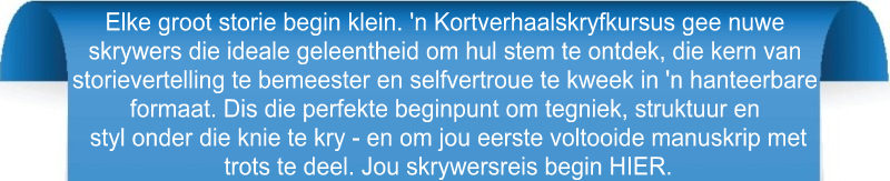 Wil jy slegs aan 'n paar van jou skryfaspekte slyp en nie 'n volledige kursus doen nie? Ons het net die blitskursus om jou hiermee te help. Klik op die skakel om na ons BLITSKURSUS-blad herlei te word, en maak jou keuse.