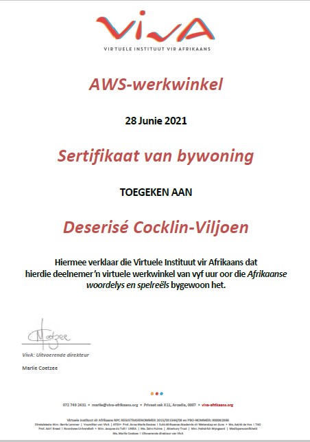 2006: Ek neem Afrikaans in voorbereiding op die Nagraadse Gevorderde Onderwyssertifikaat by.