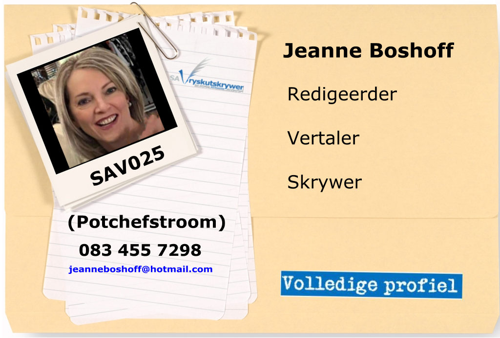 Redigering, vertaling, navorsing, algemene skryfwerk, mediaskakelingBeroep: